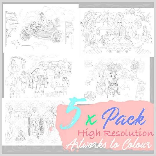 A collection of line art illustrations based on my original paintings — created for you to bring to life with your own colours.